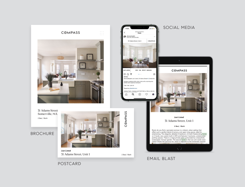 Working with our in-house marketing and advertising agency, we will target the right audience across the most effective channels through cohesive branding — all to elevate the style and story of your home.